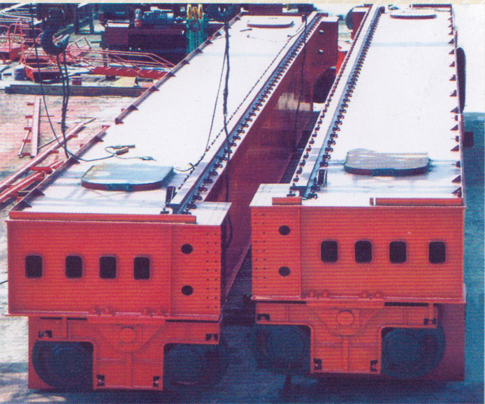 橋架在高架軌道上運(yùn)行的一種橋架型起重機(jī),又稱天車。橋式起重機(jī)的橋架沿鋪設(shè)在兩側(cè)高架上的軌道縱向運(yùn)行,起重小車沿鋪設(shè)在橋架上的軌道橫向運(yùn)行,構(gòu)成一矩形的工作范圍,就可以充分利用橋架下面的空間吊運(yùn)物料,不受地面設(shè)備的阻礙。這種起重機(jī)廣泛用在室內(nèi)外倉庫、廠房、碼頭和露天貯料場(chǎng)等處。