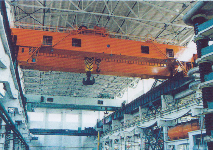 橋式起重機是橫架于車間、倉庫和料場上空進行物料吊運的起重設備。由于它的兩端坐落在高大的水泥柱或者金屬支架上,形狀似橋。橋式起重機的橋架沿鋪設在兩側高架上的軌道縱向運行,可以充分利用橋架下面的空間吊運物料,不受地面設備的阻礙。它是使用范圍廣、數量多的一種起重機械。